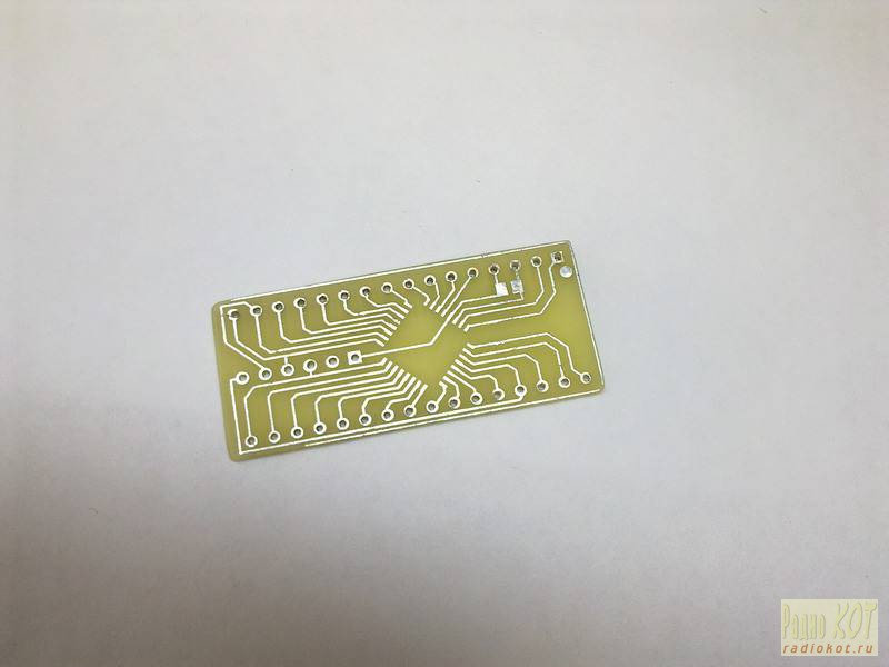 На адаптере есть разъем для ISP, чтобы можно было быстро запрограммировать мегу, просто воткнув в программатор, и опциональный разъем для кварца. Про кварц я вспомнил уже позже, поэтому на фотографии моей платы его нет, а на эскизе платы есть под него место.